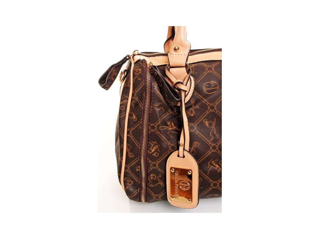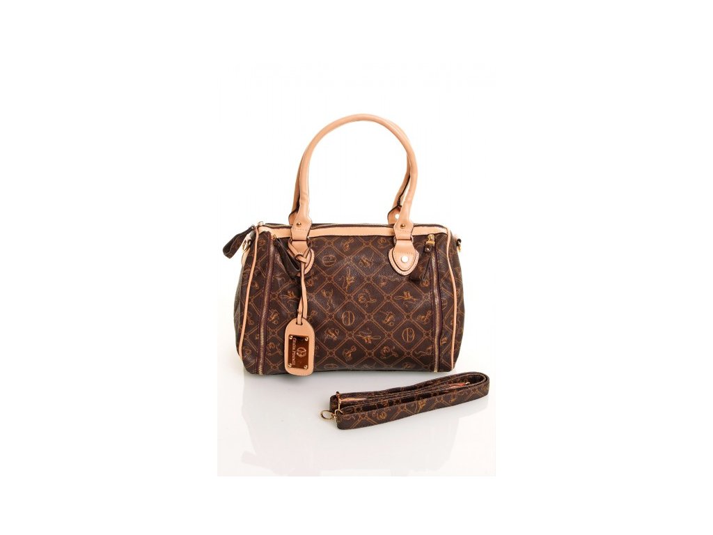 Dámská kabelka s potiskem a zipy Perfect Mode hnědo-béžová